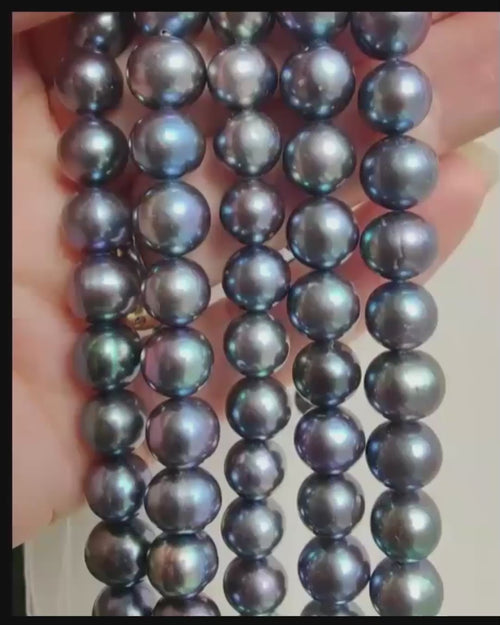 8-9 mm Peacock Blue Near Round Freshwater Pearls Loose Beads for Jewellery Making AA