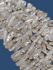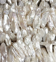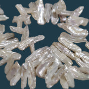 Ivory White Middle-drilled Biwa Stick Genuine Freshwater Pearls for Jewellery Making
