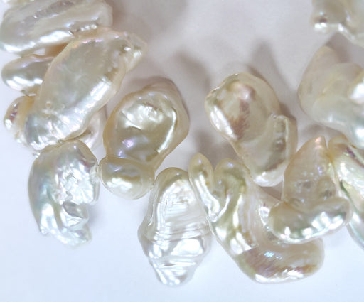 Material: Freshwater pearls Shape: Rectangular Size: 6-8 mm in width, 17-25 mm in length Colour: Ivory Surface: Baroque Lustre: Very good Hole: Sid...