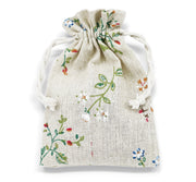 Pattened Cotton linen gift bags 8 cm x 10 cm, Drawstring small jewellery pouches Eco-friendly