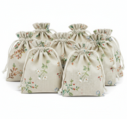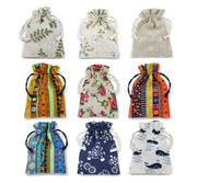 Pattened Cotton linen gift bags 12 cm x 17 cm, Drawstring small jewellery pouches Eco-friendly
