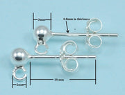 Solid 925 sterling silver ball earring posts and backs findings for jewellery making